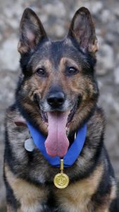 In October 2016 police dog Finn was stabbed twice while detaining a criminal saving the life of his handler PC Dave Wardell. Sadly at that time there was no law to protect police animals from harm and although he nearly killed Finn the attacker walked away from court with next to no penalty.