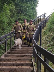 On arrival the crew from Henley found a lamb that was distressed and tired swimming in the aqueduct. The crew were able to quickly rescue it by lifting it out of the canal and onto the aqueduct walkway. A crew member then made an improvised halter and the lamb was led to safety. Contact was then made with the landowner and the lamb was reunited with the flock none the worse for its adventure.